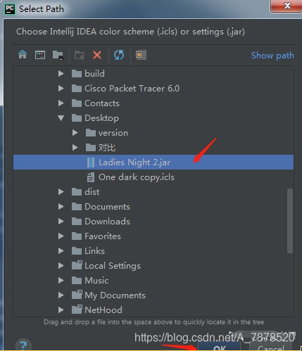3.选择下载好的jar或者是icls格式的主题(两种格式的主题一样的导入方式),点击ok即可