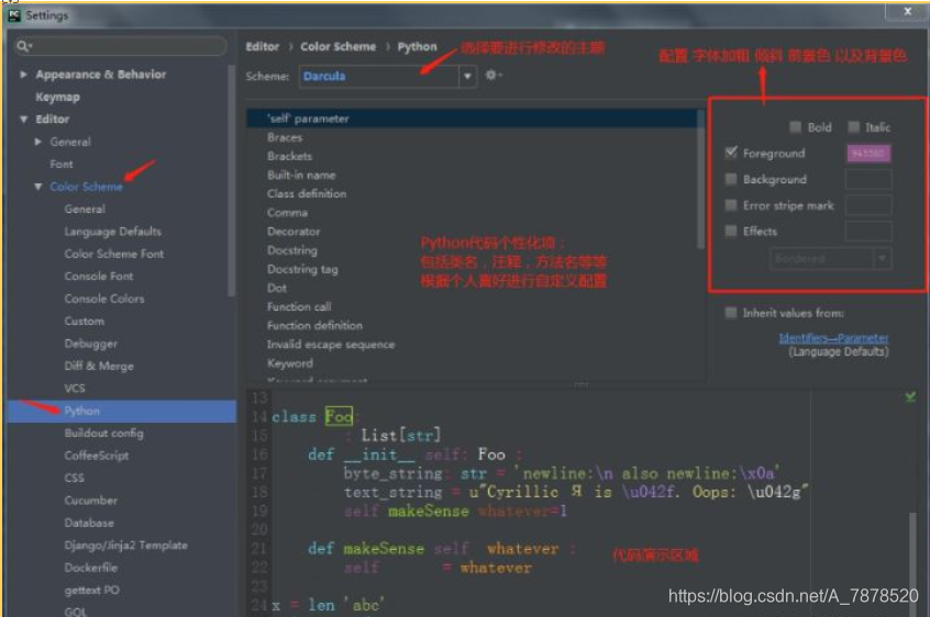 选择File---settings---Editor---Color Scheme---选中Python