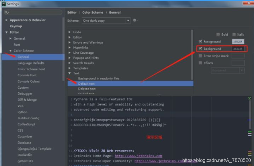 2.下载好后,打开PyCharm---File---settings---Editor---Color Scheme---选中General,在Scheme栏进行导入
